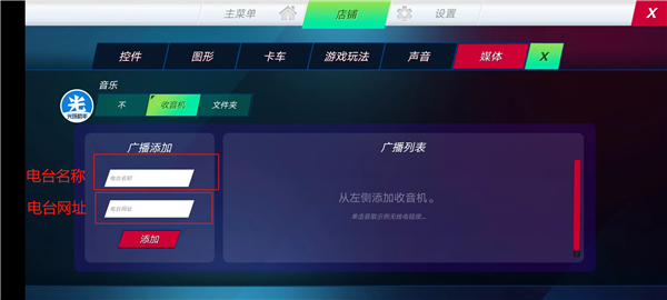 4、选定电台后,回到游戏,再点击右上角按钮展开菜单,点击播放按钮即可收听。需更换电台时,点击切换即可。